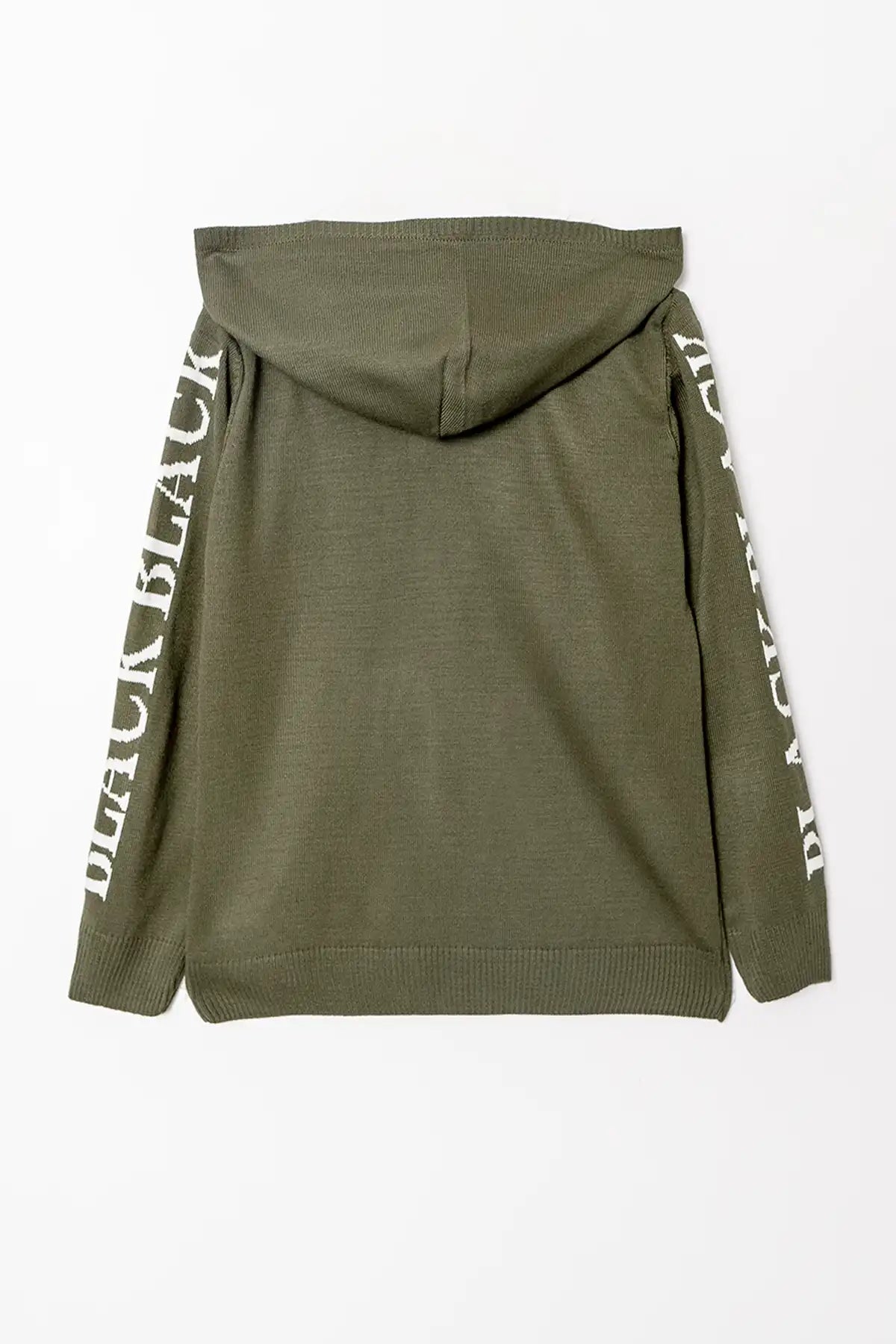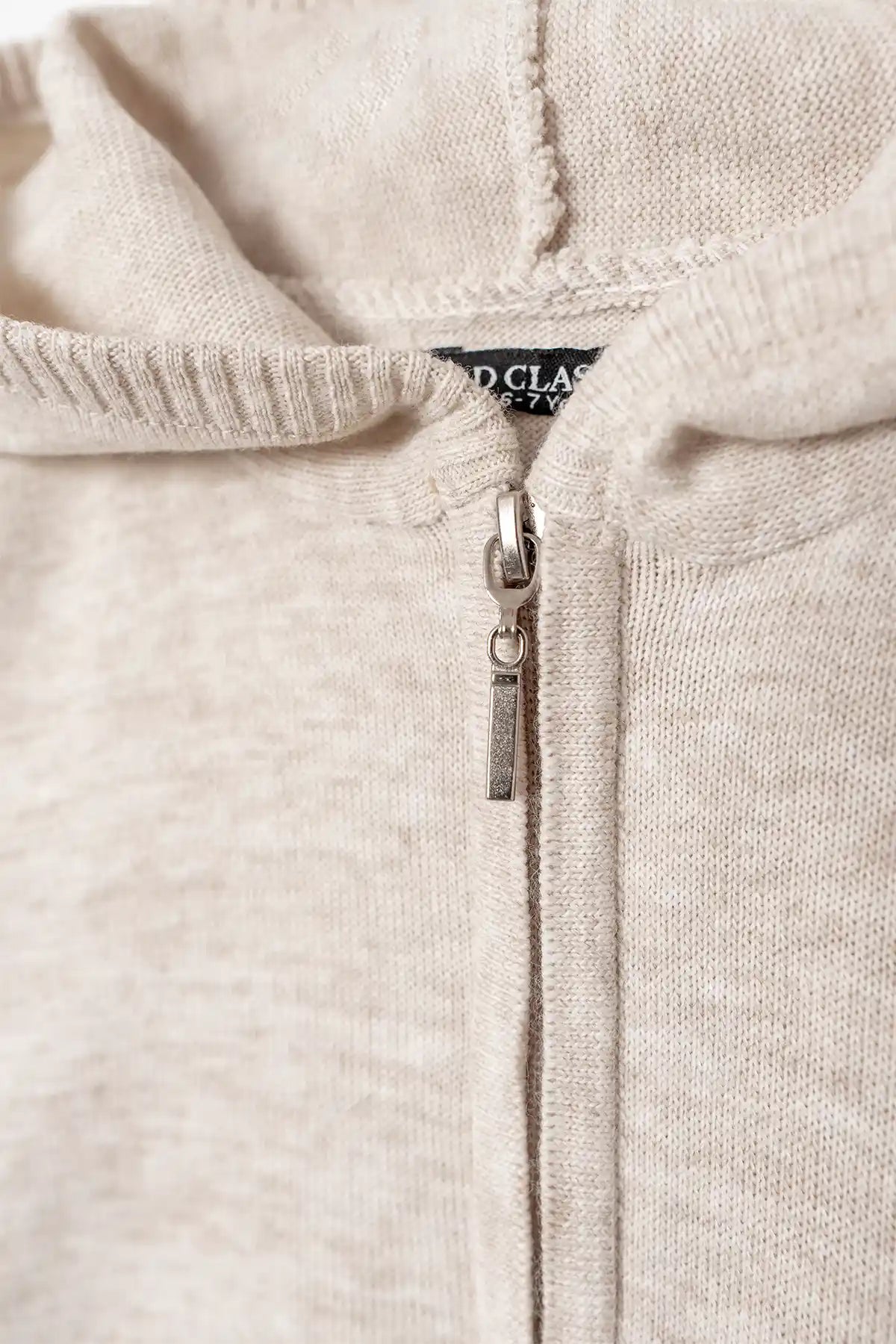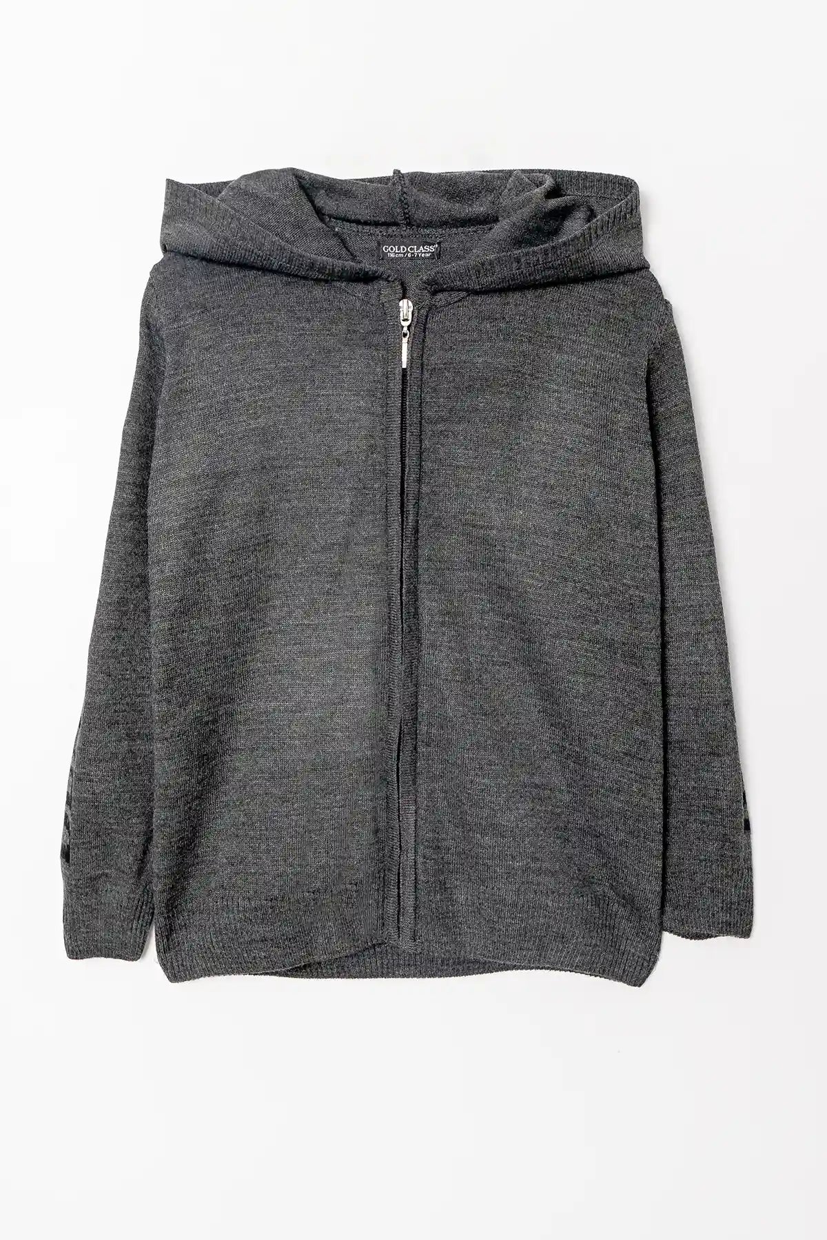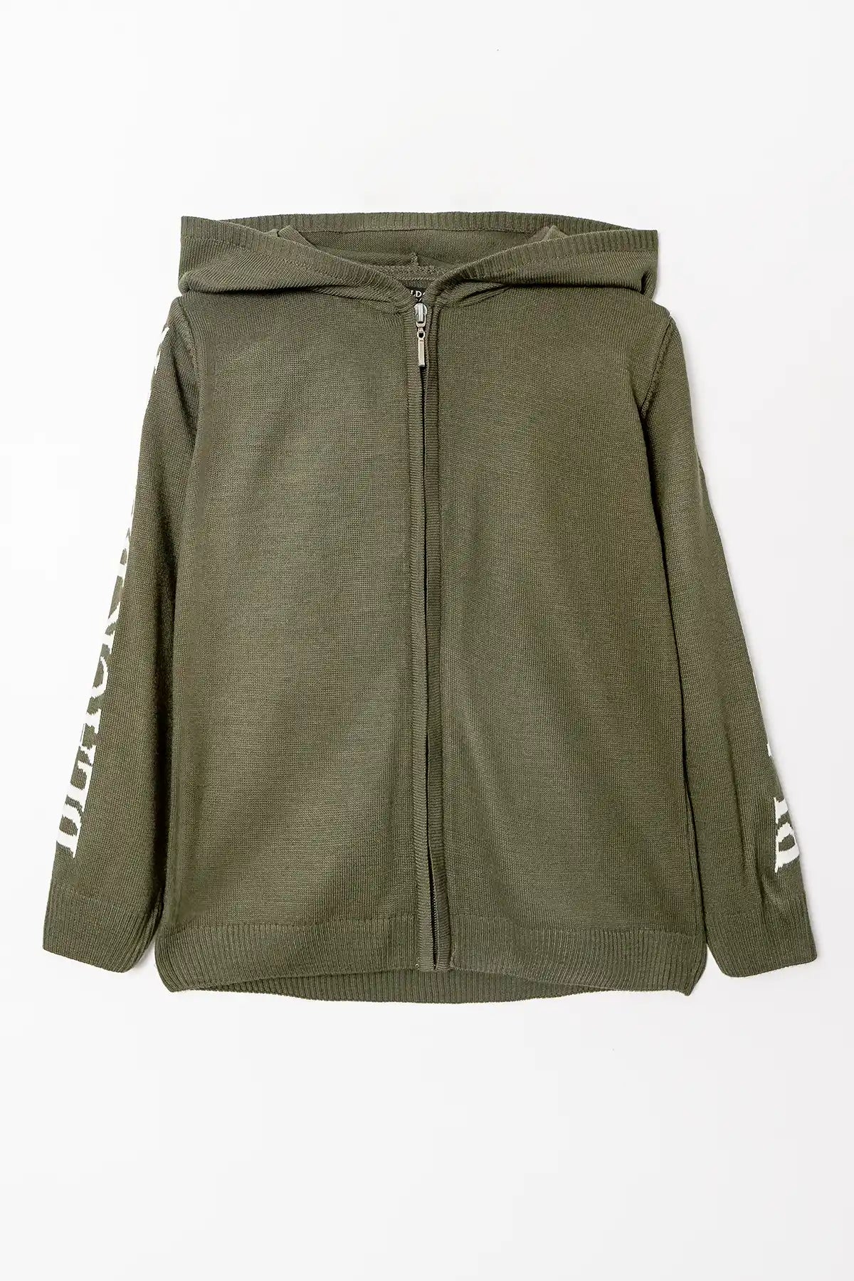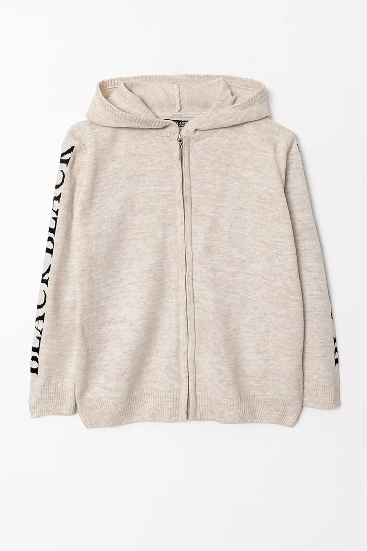 Uzun Kol Kapüşonlu Fermuarlı Erkek Çocuk Triko Hırka