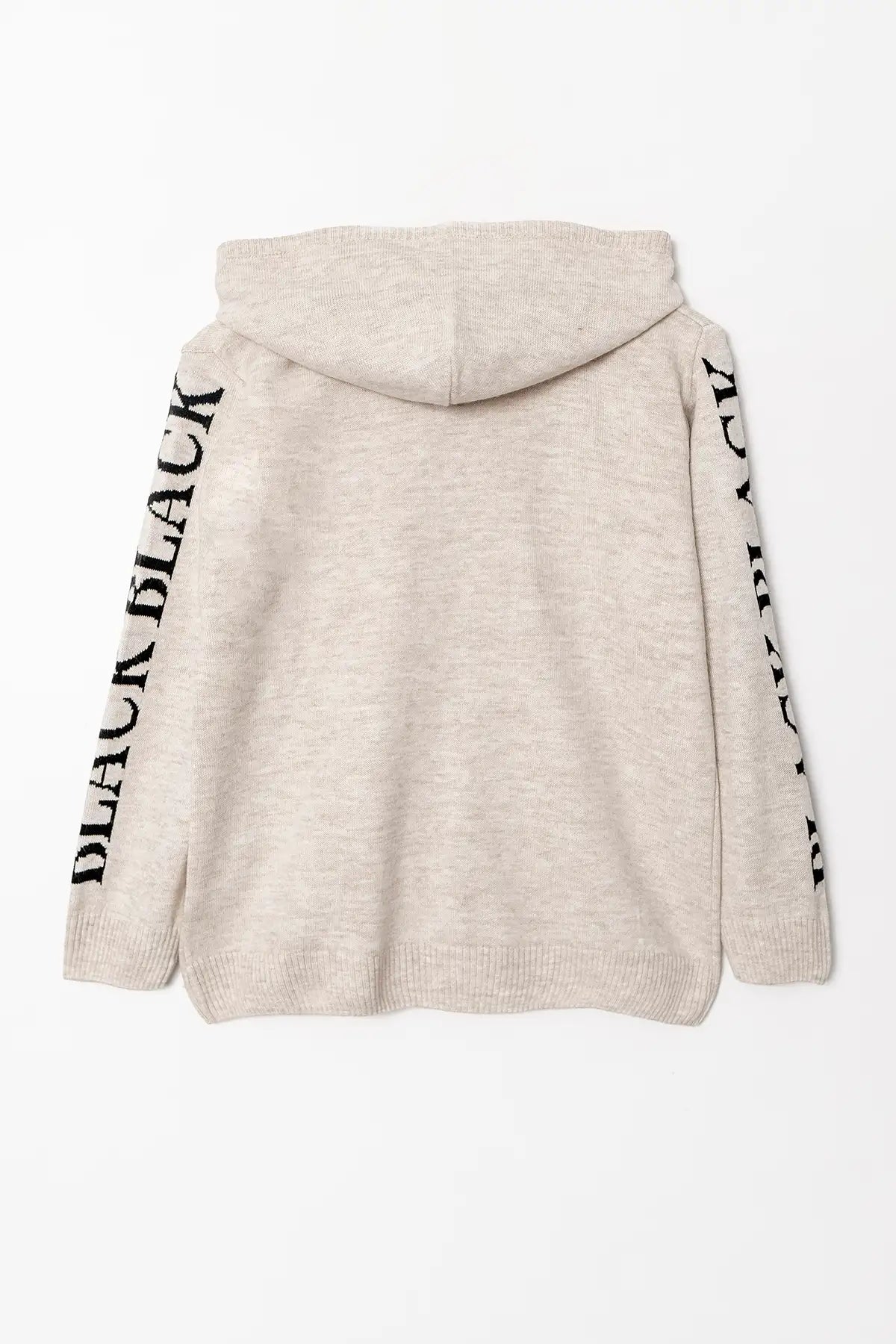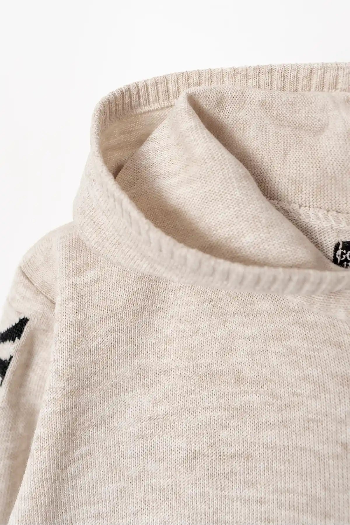 %100 akrilik kumaştan üretilen bu hırka, soğuk havalarda çocuklarınızı sıcak tutarken, kapüşonlu tasarımıyla ekstra koruma sağlar. Uzun kollu yapısı ve kollarındaki yazı desenleri, şıklık ve spor görünümü bir araya getirir.