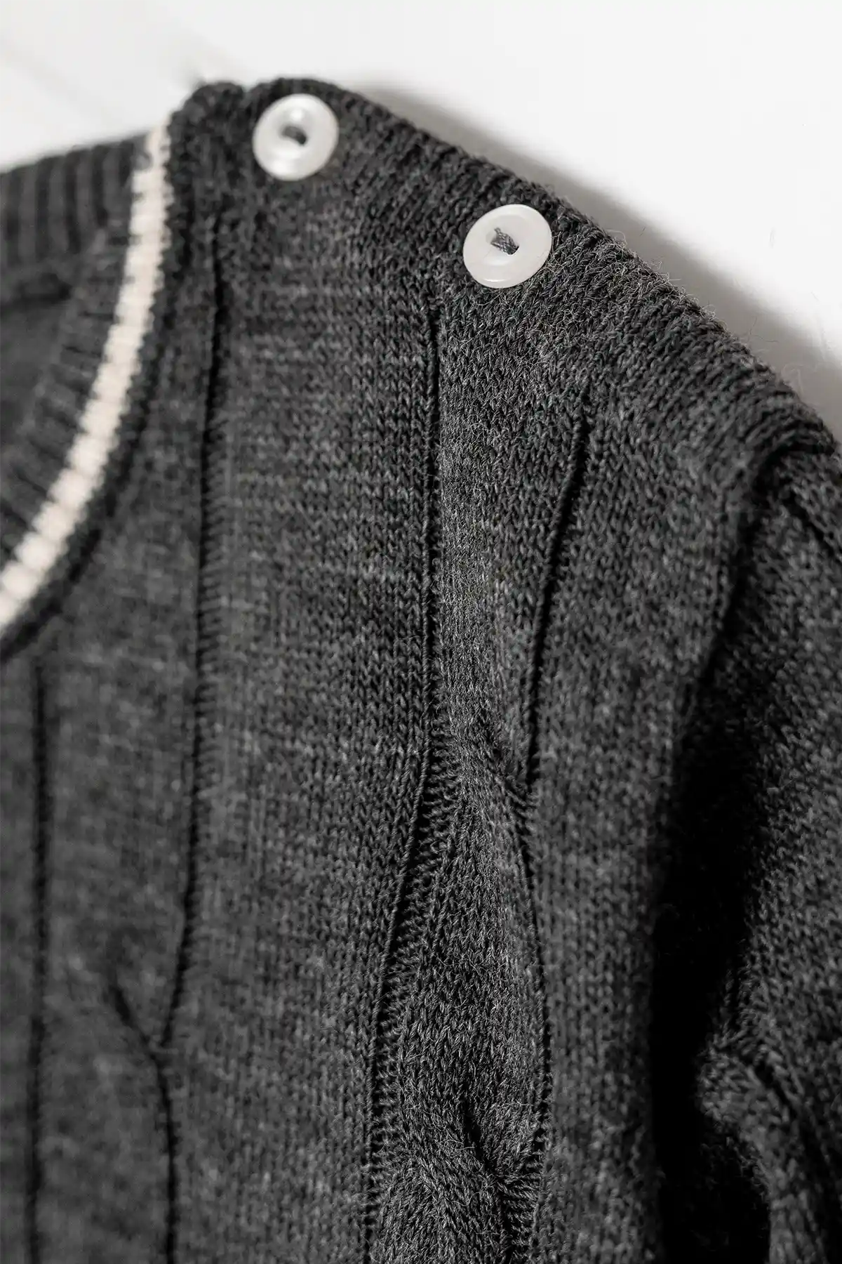 %100 akrilik kumaştan üretilen bu kazak, soğuk havalarda bebeğinizi sıcak tutarken, uzun kollu tasarımı ile gün boyu rahatlık sağlar. Omuzdaki düğmeler, kolay giyip çıkarma imkanı sunarak pratik bir kullanım sağlar.