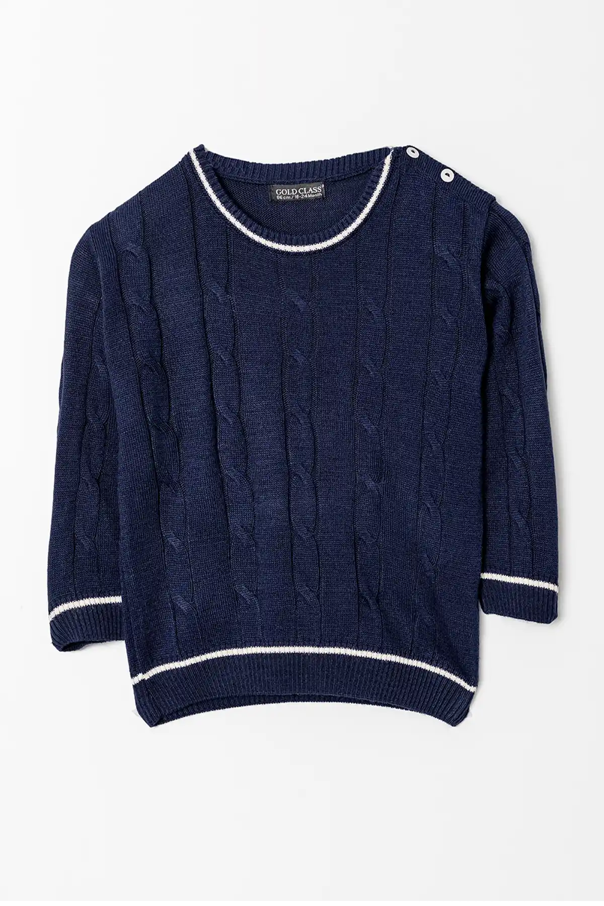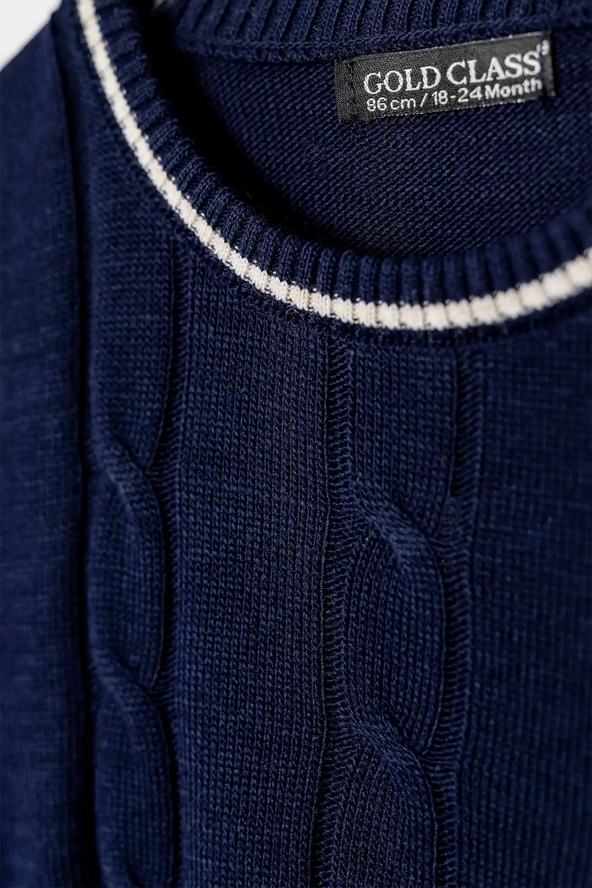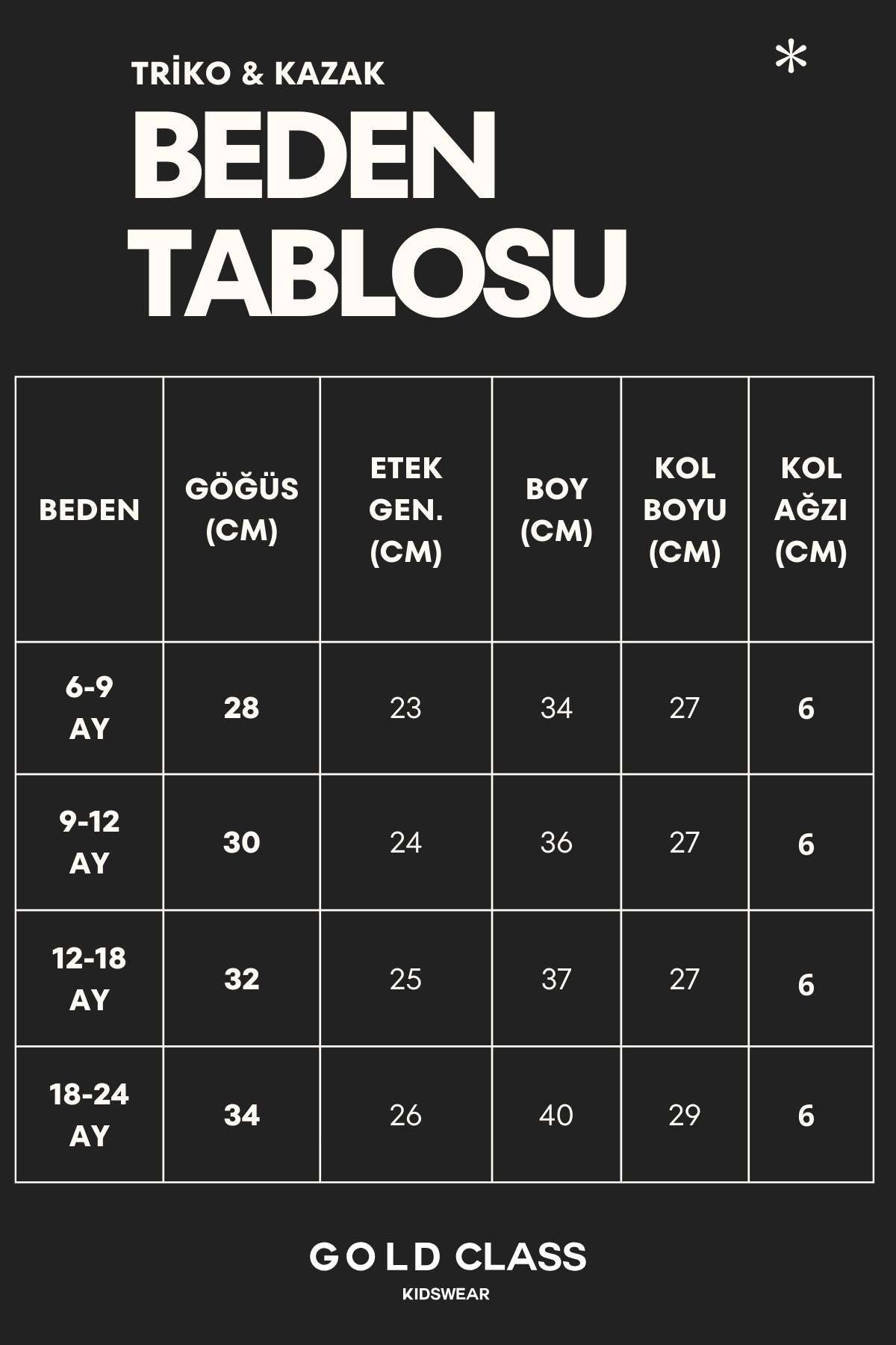 İki farklı renk seçeneğiyle sunulan bu triko kazak, bebeğinizin gardırobuna şıklık katacak ideal bir parçadır. Gold Class Kidswear kalitesiyle bebeğinizin stilini tamamlayın!