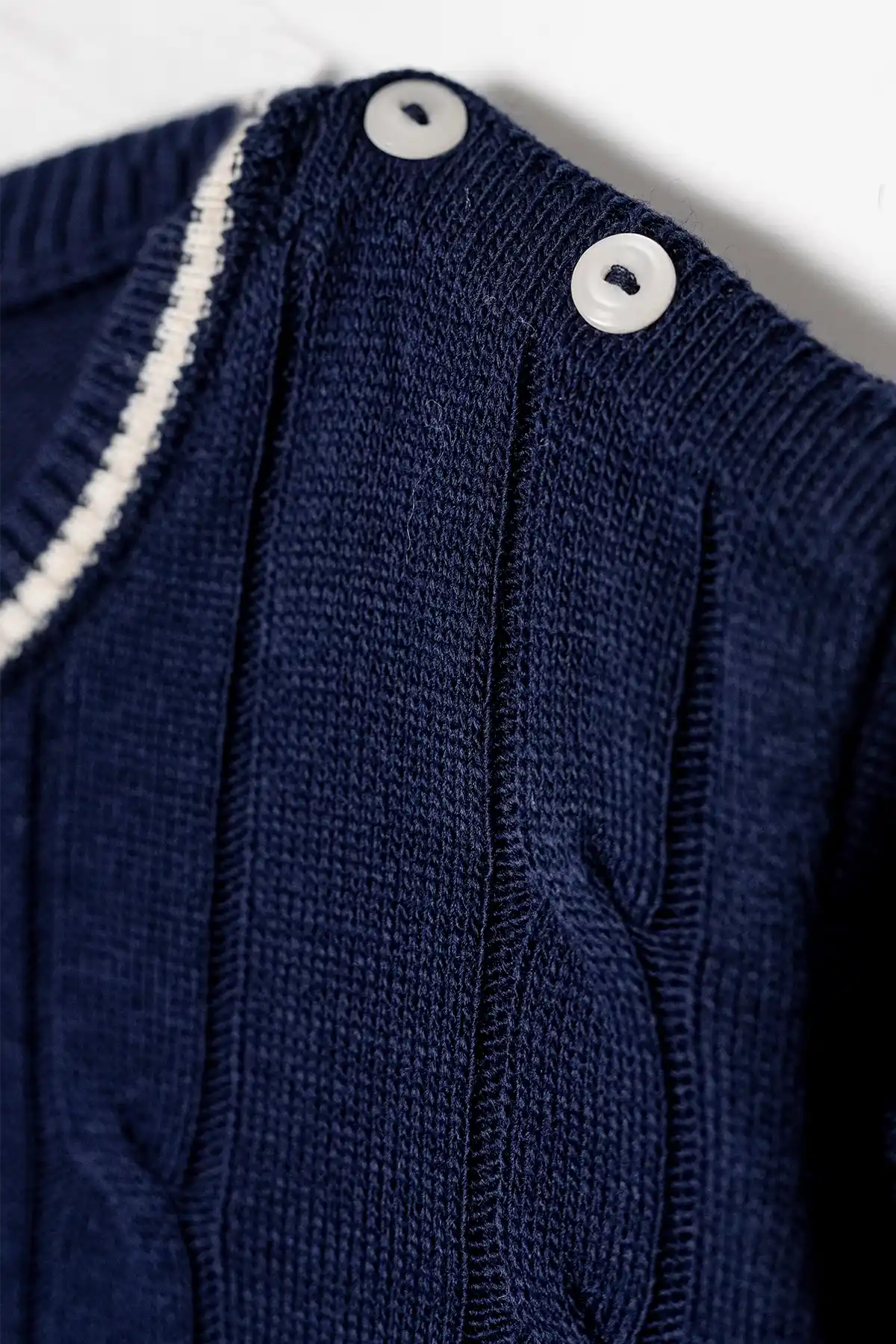 Uzun Kol Omzu Düğmeli Erkek Çocuk Triko Kazak
