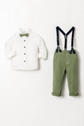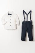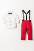 Uzun Kol Salopetli Papyonlu 4 Parça Erkek Çocuk Gömlekli Takım