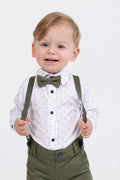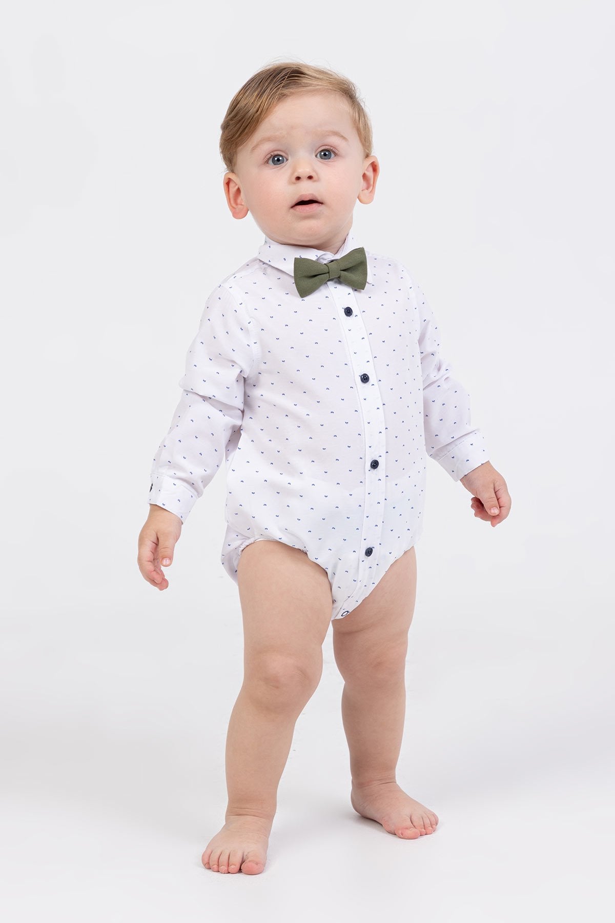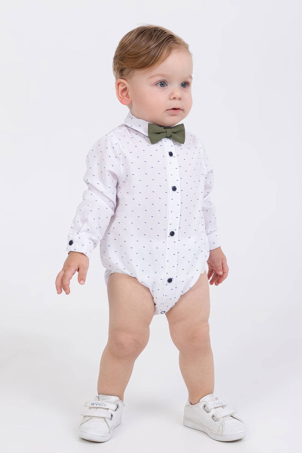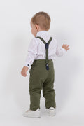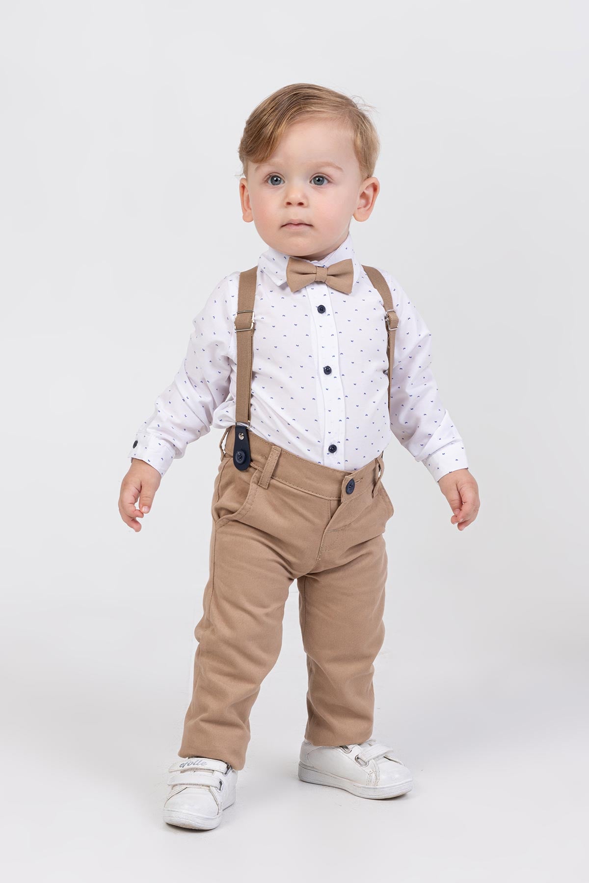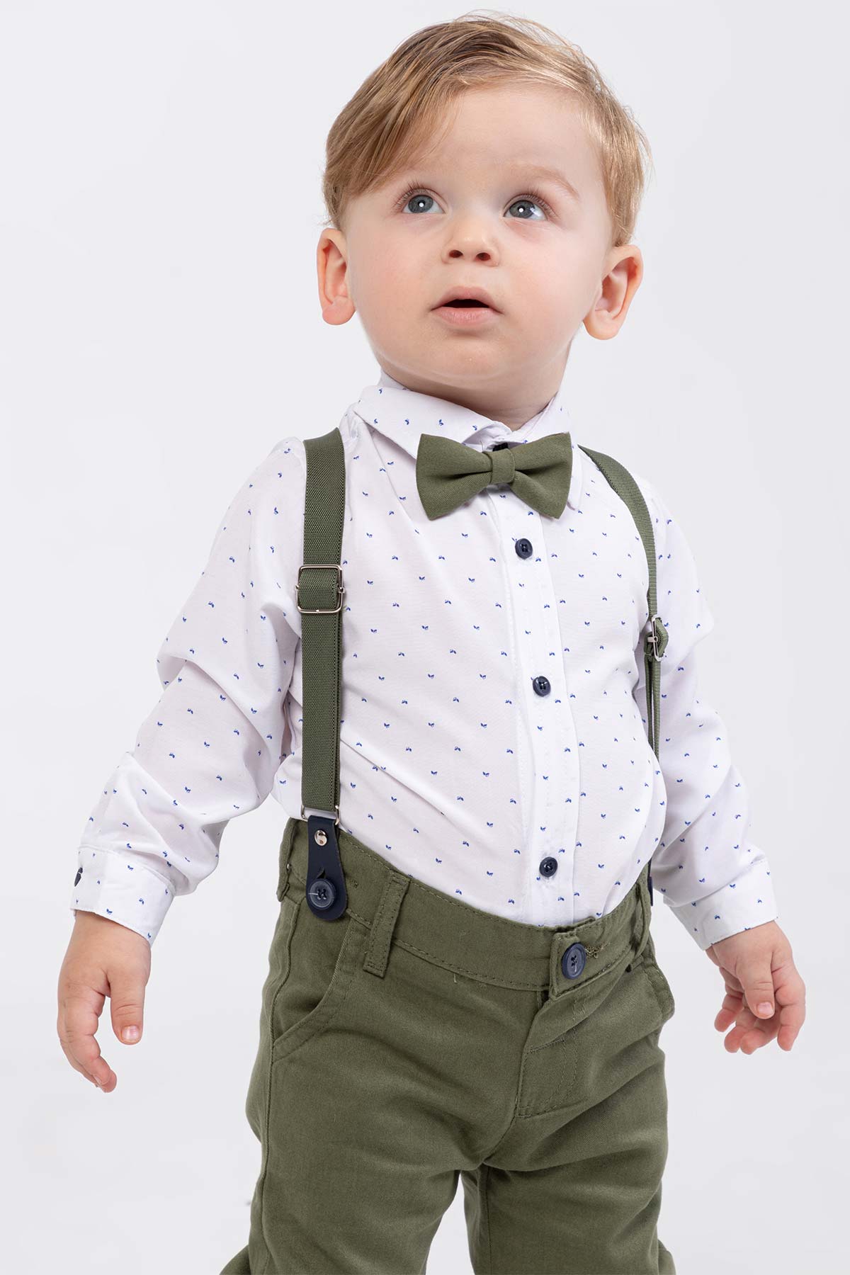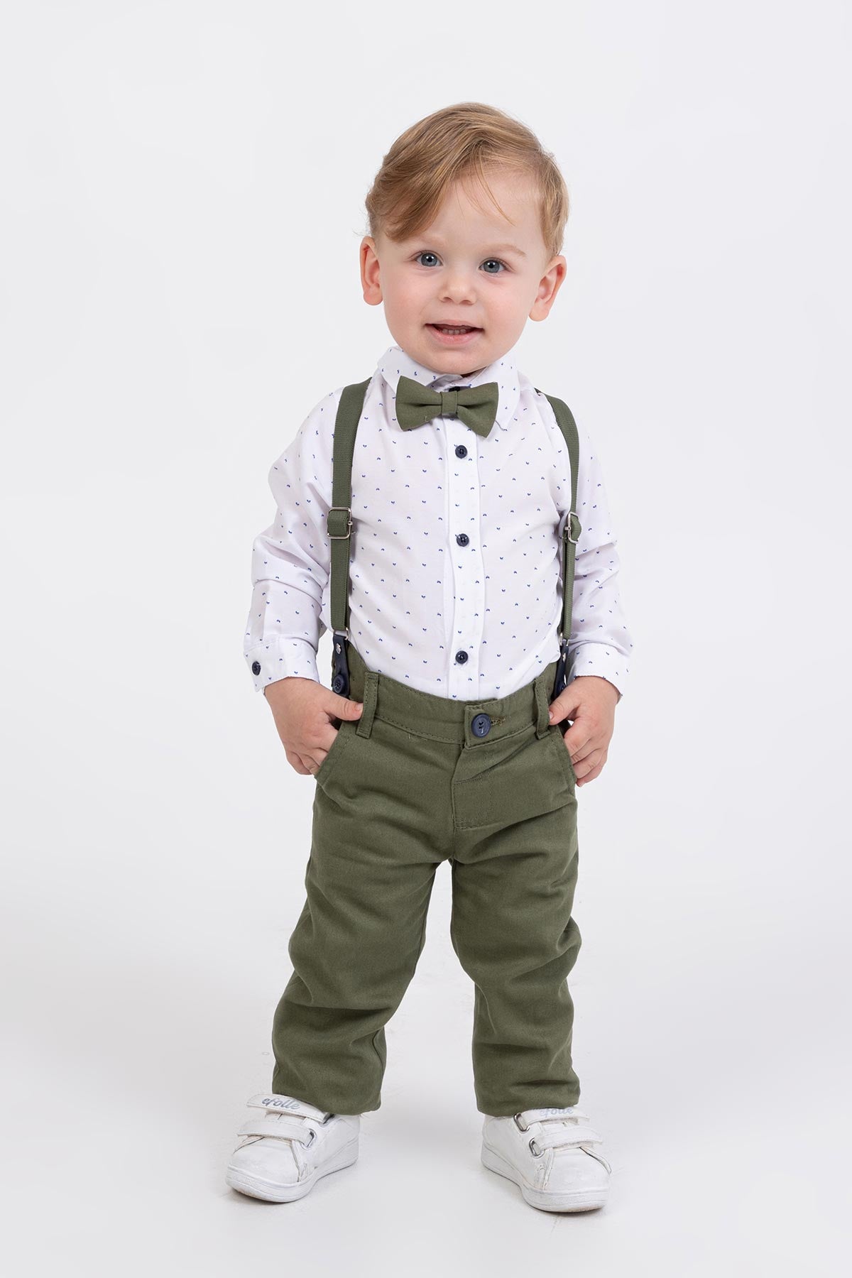 Bu muhteşem takımımızda, pamuklu beyaz renkli gömlek zıbın kullanıyoruz. Üzerinde zarif yaprak desenleri bulunuyor, hem şık hem de doğal bir görünüm sağlıyor. Pantolon ise dayanıklı gabardin kumaştan üretilmiştir ve üç farklı renk seçeneği sunmaktadır, böylece sizin tercihinize göre uygun olanı seçebilirsiniz.