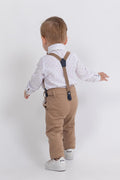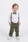 Tamamlayıcı ürünler arasında yer alan salopet askı ve papyon ile takımımızı tamamlıyoruz. Salopetin askıları ve papyon da ürünün üç renk seçeneğiyle uyumlu olarak tasarlanmıştır, böylece istediğiniz kombinasyonu oluşturabilirsiniz.